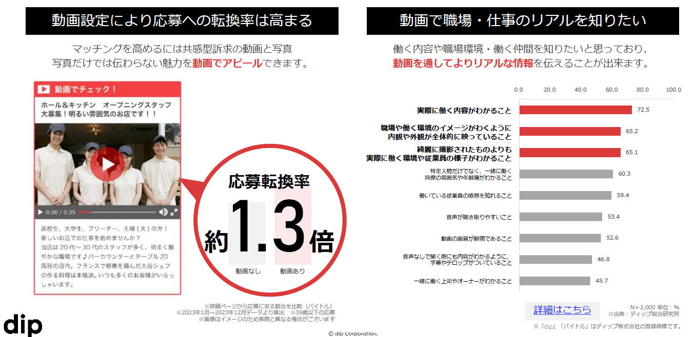 「動画」「しごと体験・職場見学」で高マッチング率の求人サイト